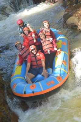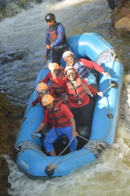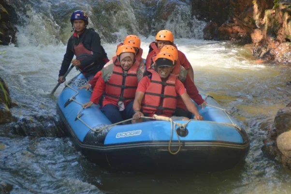 Nikmati sensasi menaklukkan jeram sungai dengan perahu karet bersama tim. Cocok untuk pemula hingga yang berpengalaman dengan berbagai tingkat kesulitan.